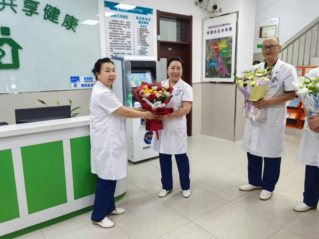 校医院副院长麻凤清为每一位医师送上鲜花,并给予节日的祝福。医师们闻着花香,沉浸在节日的喜悦中。座谈会上,校医院院长任丽娟首先为全体医师送上了节日祝福,并对一年来医师们的辛苦付出表达了衷心的感谢,对取得的成绩给予了充分的肯定。