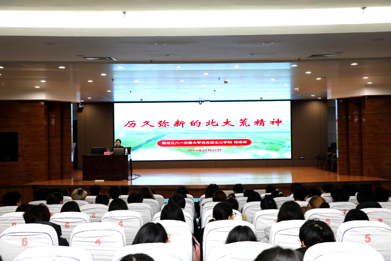 党的十八大以来,习近平总书记三次亲临黑龙江考察调研,就“建设现代农业大基地、大企业、大产业”“当好国家粮食安全‘压舱石’”等作出重要指示。宣讲中,陈彦彦教授从“维护国家粮食安全的‘压舱石’”“北大荒精神形成与内涵”“北大荒精神的历史地位与时代价值”三个方面进行详细地阐释,通过典型人和事深刻阐释了“自力更生、艰苦创业、勇于开拓、甘于奉献”的北大荒精神内涵,宣讲案例翔实、史料丰富、内容生动。北大荒精神是中国共产党人精神谱系的重要组成部分,是龙江优秀精神的典型代表,是奋力实现龙江全面振兴、全方位振兴的强大精神动力。龙江广大干部群众积极践行北大荒精神,牢记嘱托、感恩奋进、真抓实干,粮食生产实现二十一连丰。