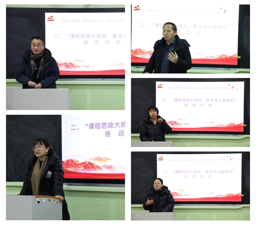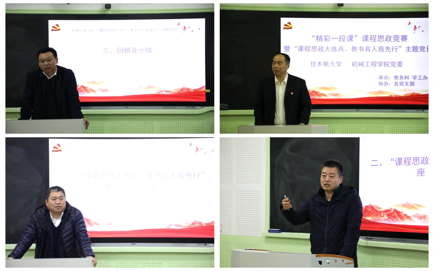 在座谈讨论环节,与会领导及6位评委导师团教师(多数为参赛教师的入职导师),对参赛者用情、用心、用力准备比赛课件及宣讲过程给予了一致认可和高度评价,并结合自身的教育教学工作经验及参赛者的临场表现,分别从思想政治教育元素的融入方式与程度、模拟听课主体所感受到的受调动程度、教学方法的适切性及创新性、日常课程思政教学素养、教学材料与资源支持等方面进行了点评,分享了“重元素更重基因”“不囿于形——顺势而为”“强化专业知识中心”等课程思政建设有关体会和建议,同时就比赛现场有关教师的语速、语调、板书、站姿、台风、心态、情绪及课前与课后相关教学准备等细节及相关事项进行了暖心提示。