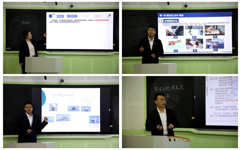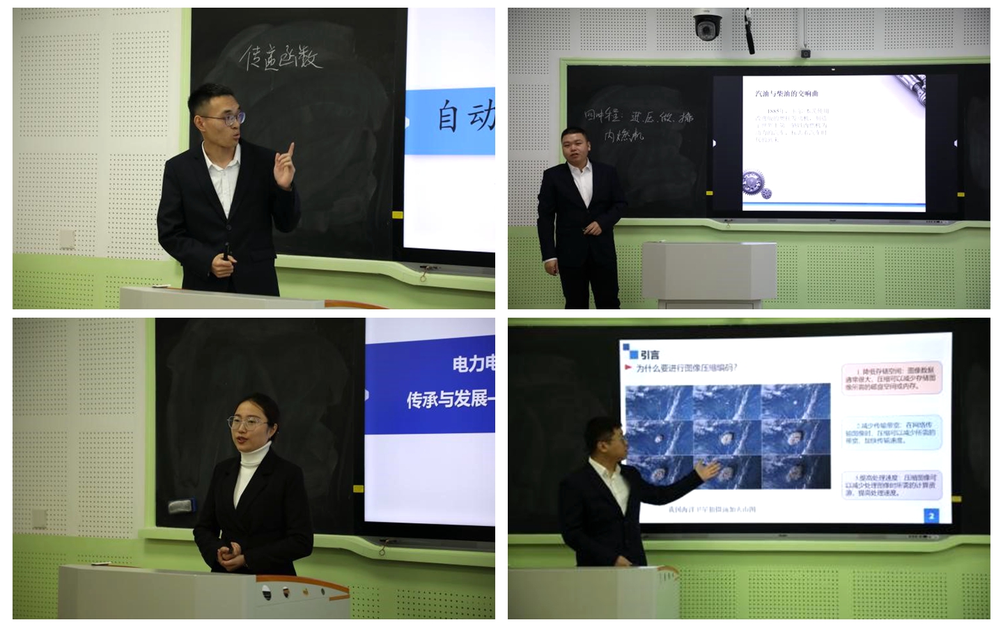 在“精彩一段课”课程思政竞赛环节,8位近两年参加工作的年轻教师依次上场宣讲。宣讲从引入飞行器发展史助讲流体力学之伯努力方程,到结合工业机器人技术及应用讲解关节的传动装置,再到引入“华中数控”大国重器故事助讲数控加工技术;从讲解齿轮系与团结协作、匠心精神及我国自主研发齿轮副破解空间站能量供给难题有机融合,到以内燃机驱动史话、珠海最新航展助讲内燃机增压技术,再到结合机器视觉及图像压缩常见案例助讲图像处理基础知识;从阐释电力电子器件背后的使命与担当、助讲电力电子技术,到结合团队配合、设计歼-35A、红旗-19等军中利器控制系统来助讲控制原理之传递函数。参赛教师年轻而睿智的话语,精神抖擞又略带些微紧张的台风,深挖家国情怀、工匠精神和团结协作意识的讲述,引得与会师生不时发出会心微笑或报以热烈的掌声。